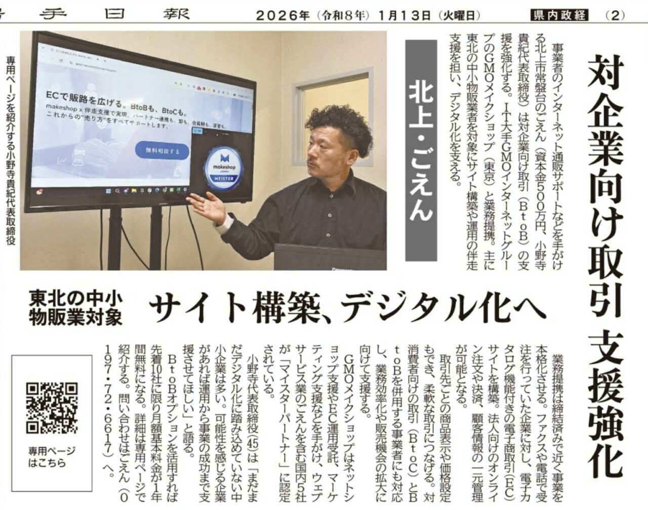 Home - お知らせ - 岩手日報に当社の取り組みが掲載されました | GMOメイクショップとの業務提携
